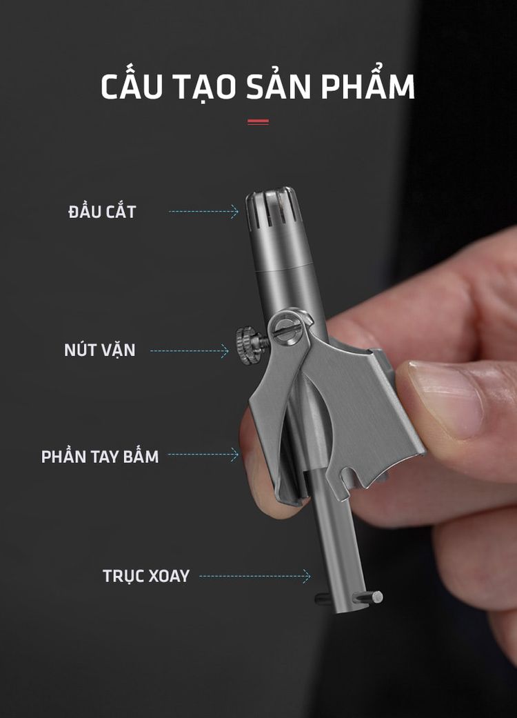Dụng cụ cắt tỉa lông mũi được sử dụng dựa trên nguyên lý lực cộng hưởng đơn giản, dễ dàng, không sử dụng đơn điện không dùng pin cực tiện lợi.