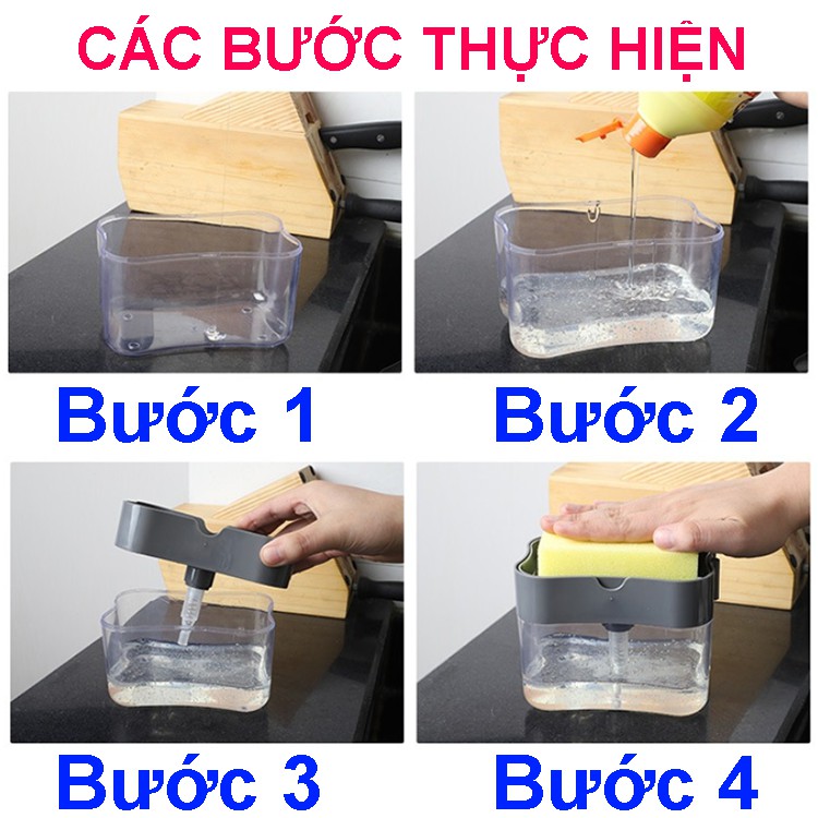 Sử dụng bộ dụng cụ rửa chén cực đơn giản với những bước cơ bản như trong hình dưới đây.
