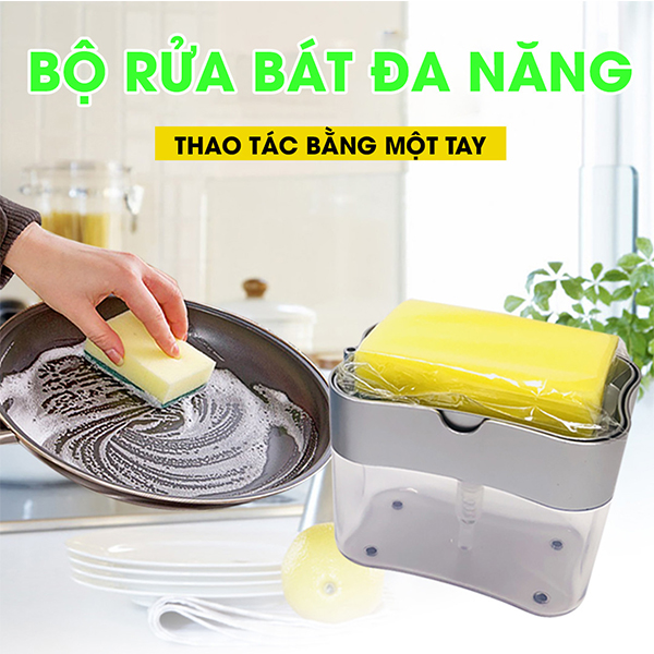 Với bộ rửa chén đa năng bạn có thể lấy dung dịch và rửa sạch bát đũa nhanh chóng chỉ với một tay